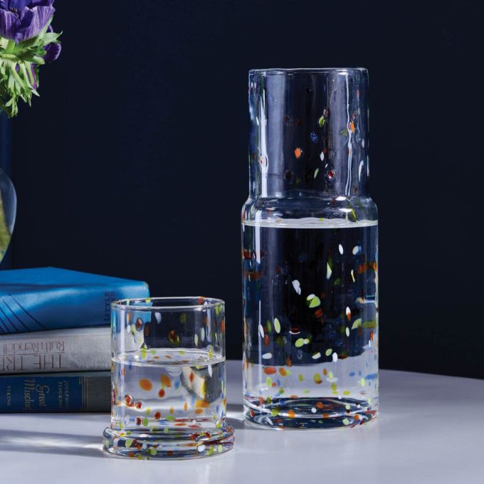 A hand-blown glass carafe is a thoughtful touch for guests-and our Faro goes the extra mile by making old-fashioned hospitality look of-the-moment in six different finishes.