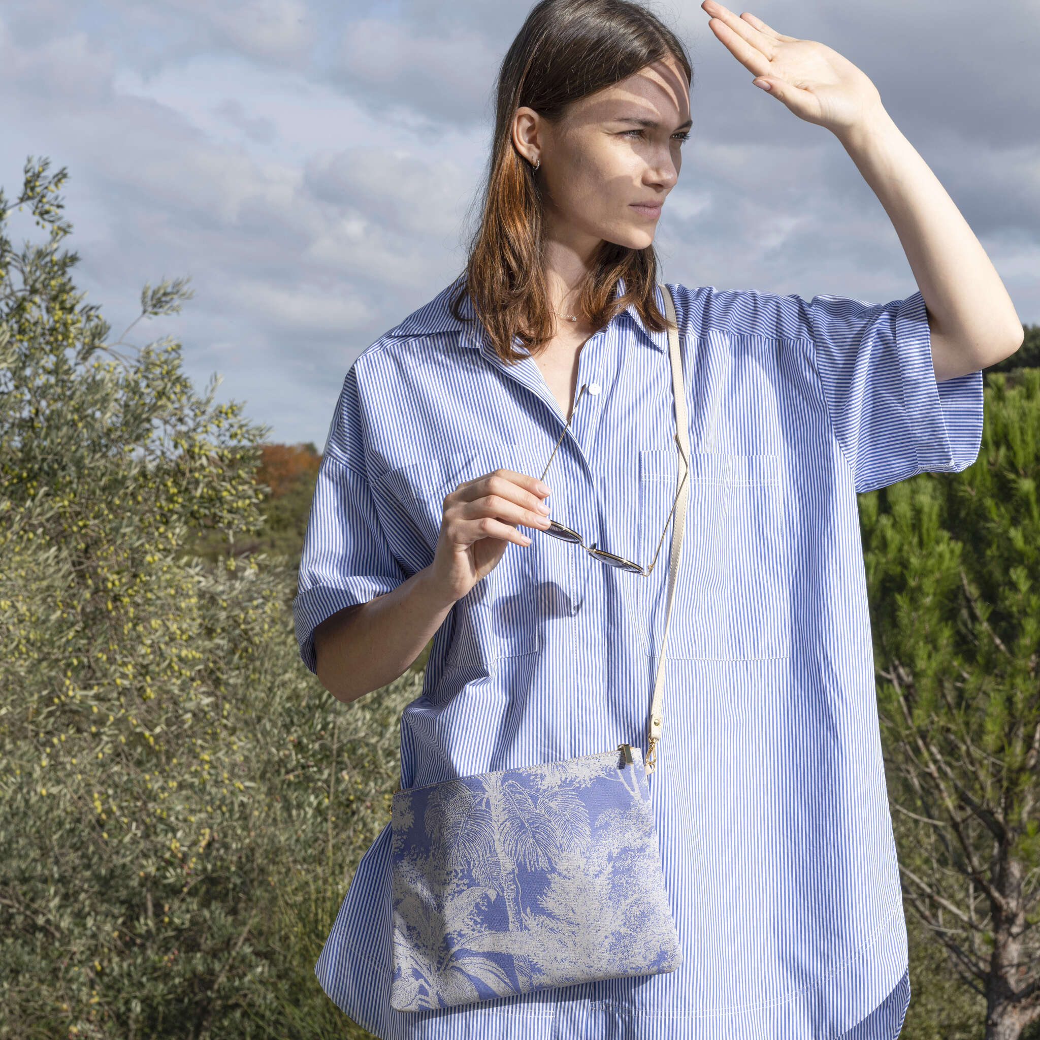 A straight shape for a contemporary and urban look, the vertical tote bag will serve for all occasions. Its flat and soft handles allow a hand carry, a shoulder carry or a comfortable and safe arm carry. Holder of an exceptional know-how in jacquard weaving and recognized for the detail and refinement of its designs, Le Jacquard Français innovates in the leather goods segment, at the crossroads between decoration and fashion. A timeless and elegant line, made in France. We have designed a sober line with consensual tones associated with a timeless beige leather so that the tote bags adapt with elegance to all your outfits. Landscape engraving for a refined style or more contemporary geometric patterns, you'll love it! Ideal dimensions for a practical everyday bag. Magazines, comforter, water bottle and lunch box, you can use it during the week as well as on weekends. From the cotton flower to the final packaging, the design of the bags is 100% European. A strong commitment to limit the environmental impact through short circuits. Attached to the preservation of French know-how and its influence, the manufacturing process relies on an ecosystem of craftsmen selected for their excellence. A requirement of quality for sustainable products. Jacquard weaving allows us to obtain patterns through the play of weaves that will not fade with time. A meticulous work to obtain fine and precise drawings, like an engraving. The leatherworker then shapes the articles thanks to the hands of the craftsmen who work a delicate magic. From the assembly of the handles to the sewing of the leather strap, everything is precision. The careful finishes give the bags a luxurious character, the interior seams are trimmed, the top of the bag is finished with an English leather edge. The handles without frames for more flexibility and elegance, with finely sanded and hand painted edges, offer great comfort. The tote bags come with a removable pouch hung with a leather tie. Metallic zipper.