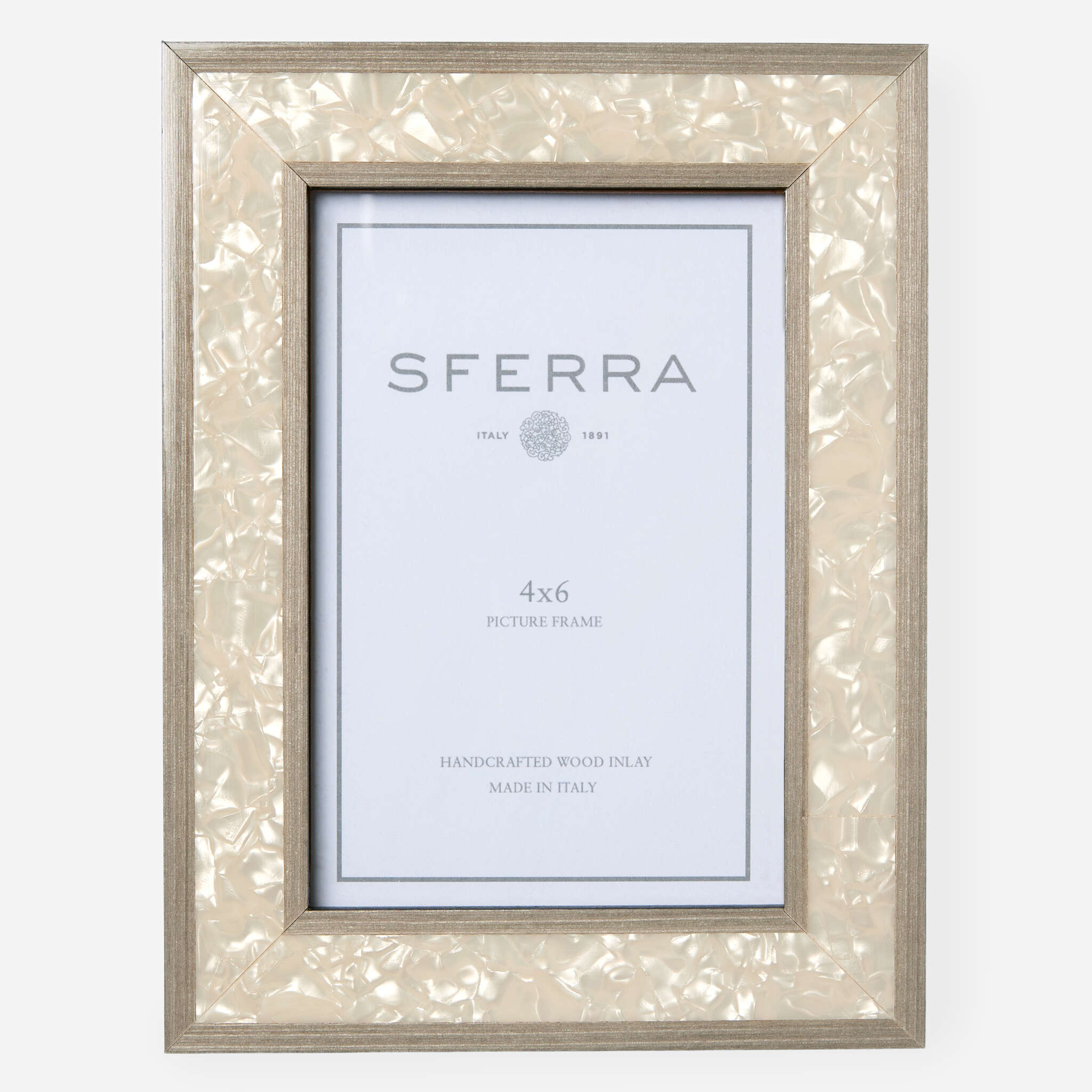 Hand-crafted from Tulip wood and Poplar by Italian artisans, Ravello’s solid borders delineate a shimmering inlaid panel to highlight photographs with ethereal light.