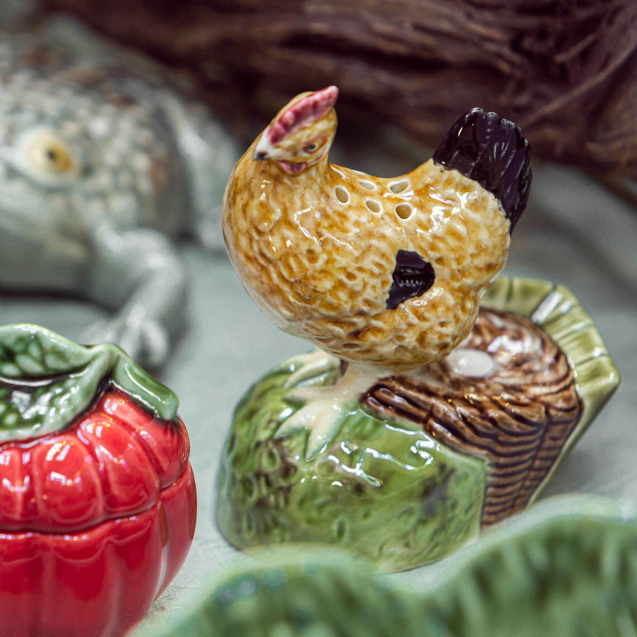 The toothpick holder was the reduction of the vanity and the arrogance to the most caricature form. Thus the Marquis of Franco is presented as a goose dressed in a coat. However, the factory manufactured other pieces with more simple and naturalist themes, representing farm animals and pets.