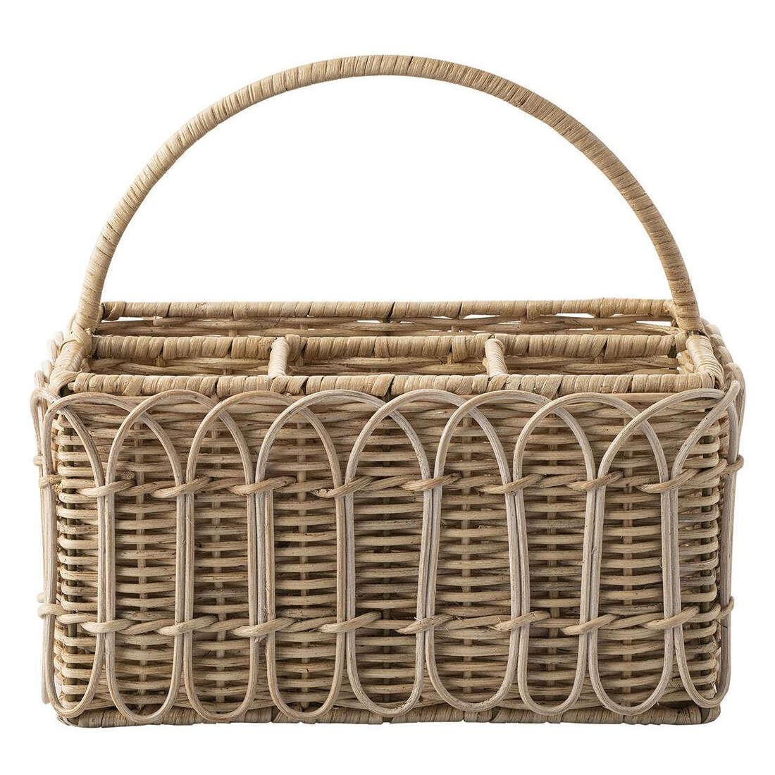 Al fresco feasts and boisterous buffets are kept tidy with this chic caddy that organizes utensils, napkins, and condiments while delivering an element of natural beauty in handwoven rattan.
