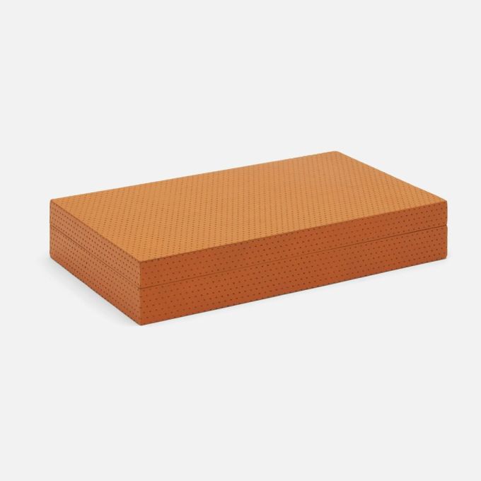 Perforated leather domino set to inspire playtime for all generations. Available in standard and oversized.