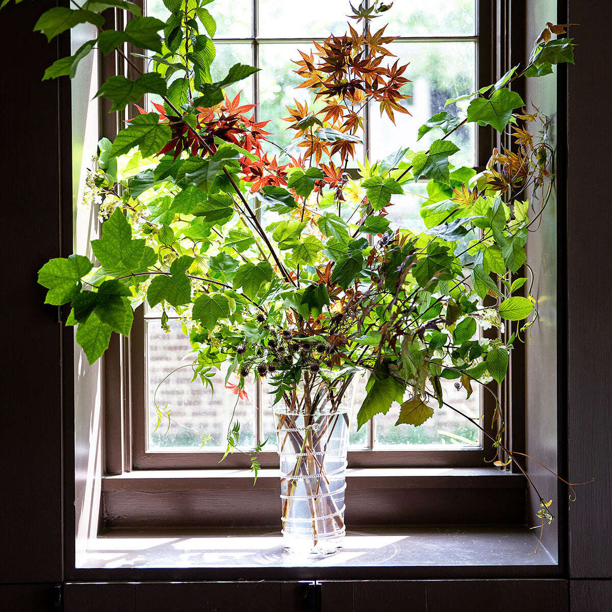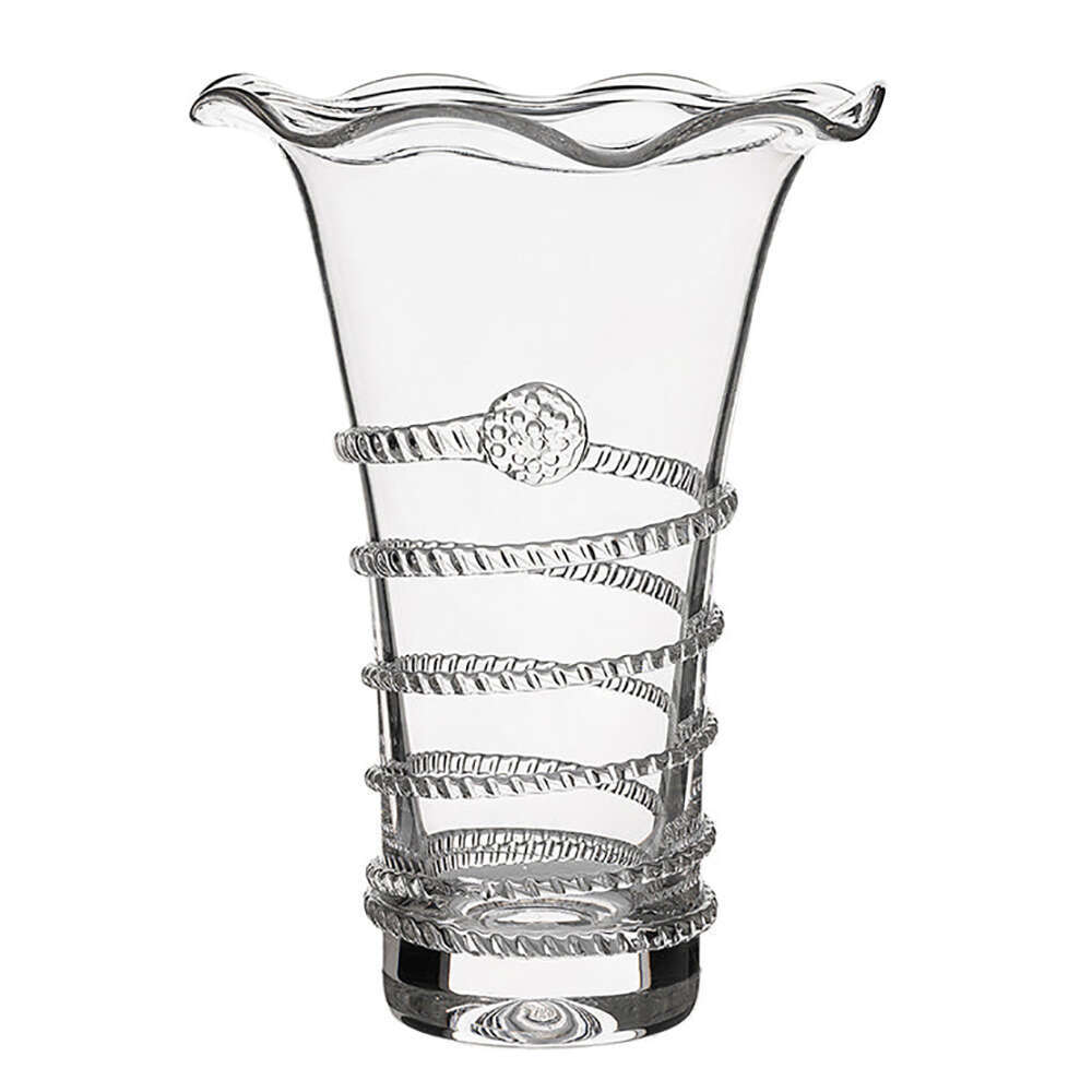 Part of our Amalia Collection and sporting a new flared rim, this 6" vase is bedecked with signature spiral and is the perfect petite size to frame a single rose or frilled carnation on a bedside table or next to the sink.