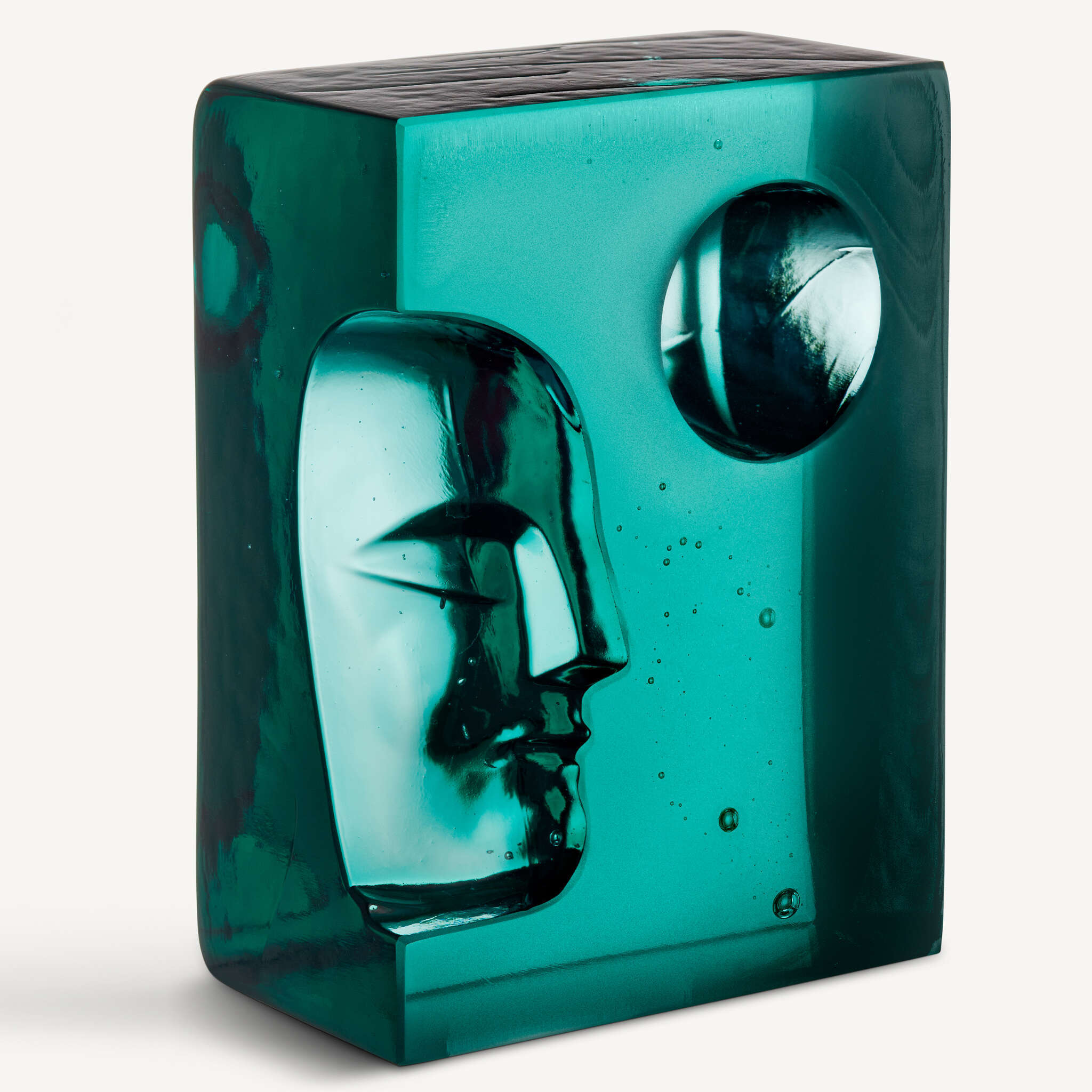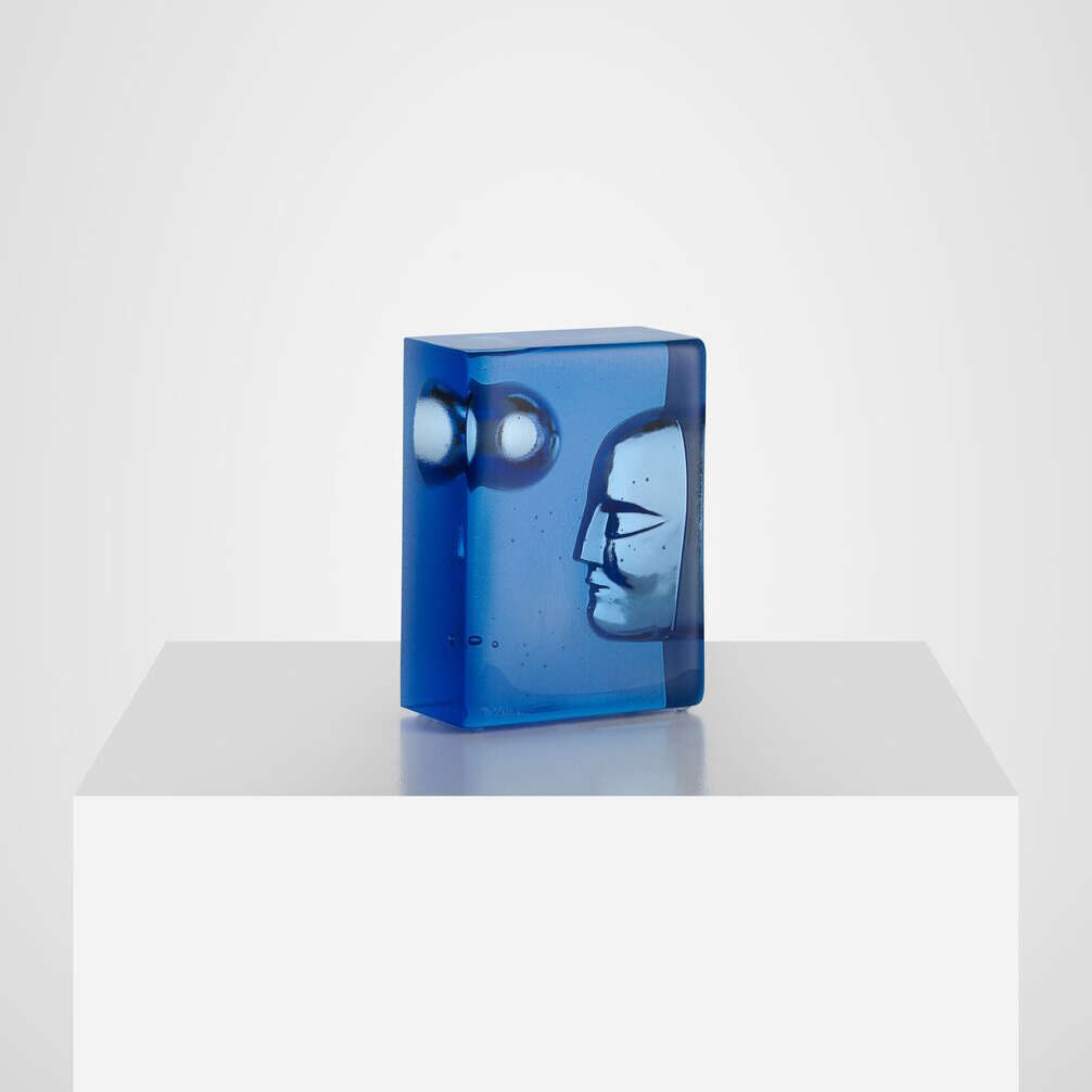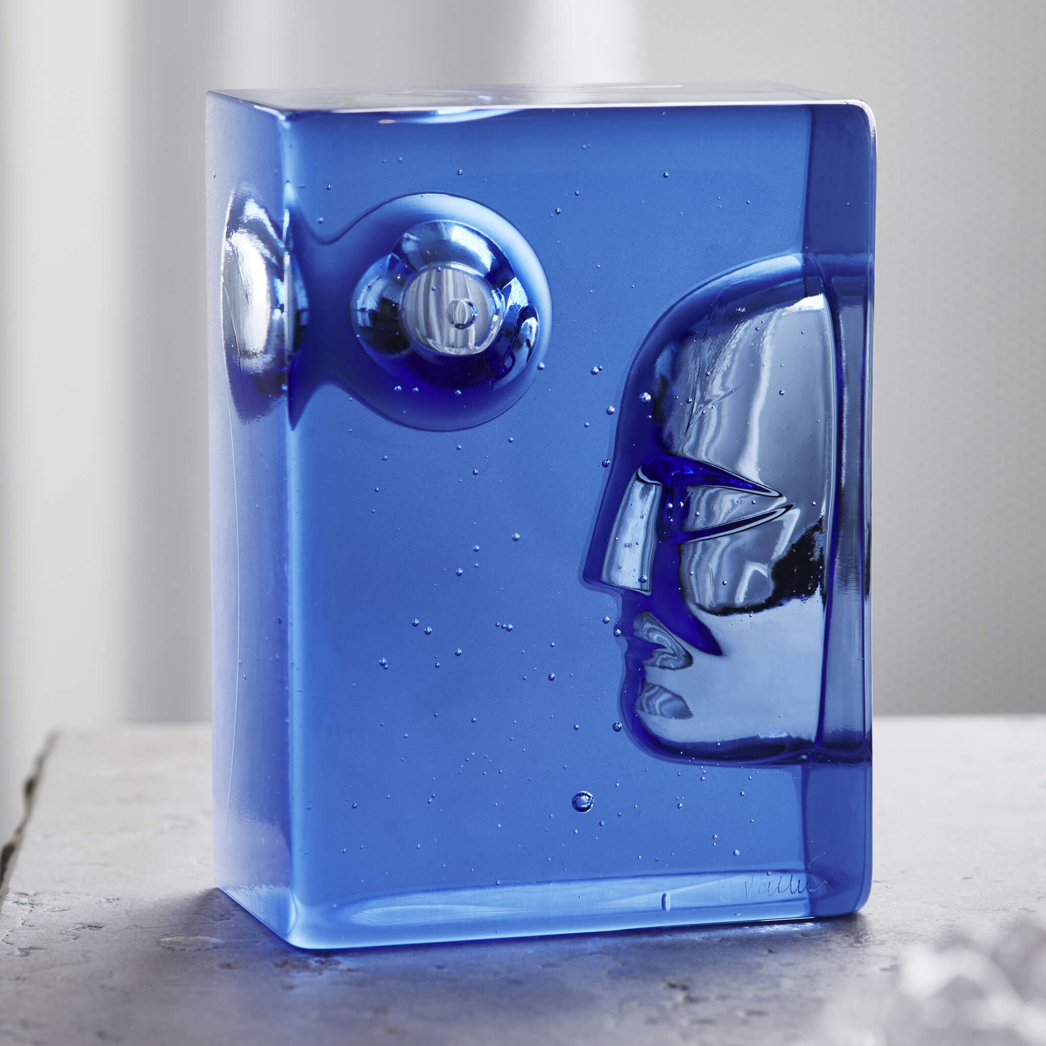 The renowned Swedish glass artist Bertil Vallien has created Azur Moon. It is an exclusive art object in glass, cast in a charcoal mold, with an imprint of a face under the moon. The face is a recurring Bertil Vallien motif – one of his signatures, often seen in his magnificent boats of glass. The object is handmade at Kosta Glassworks in Sweden and is part of the Kosta Boda Artist Collection.