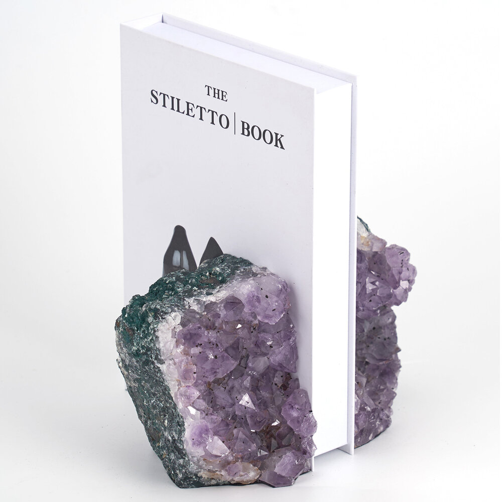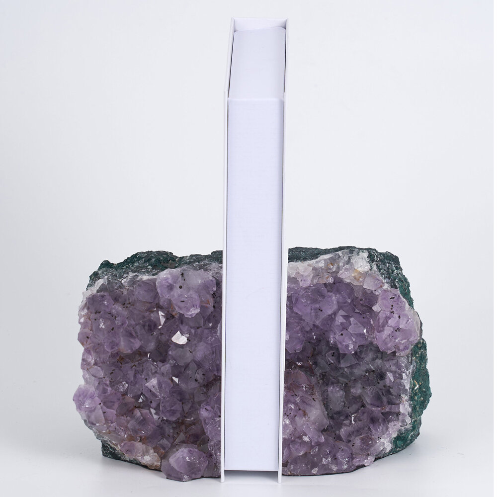 Elevate your shelf decor with our stunning set of amethyst bookends. Crafted to perfection, these pieces effortlessly blend sophistication with bohemian charm, making them the perfect statement accent for any room.