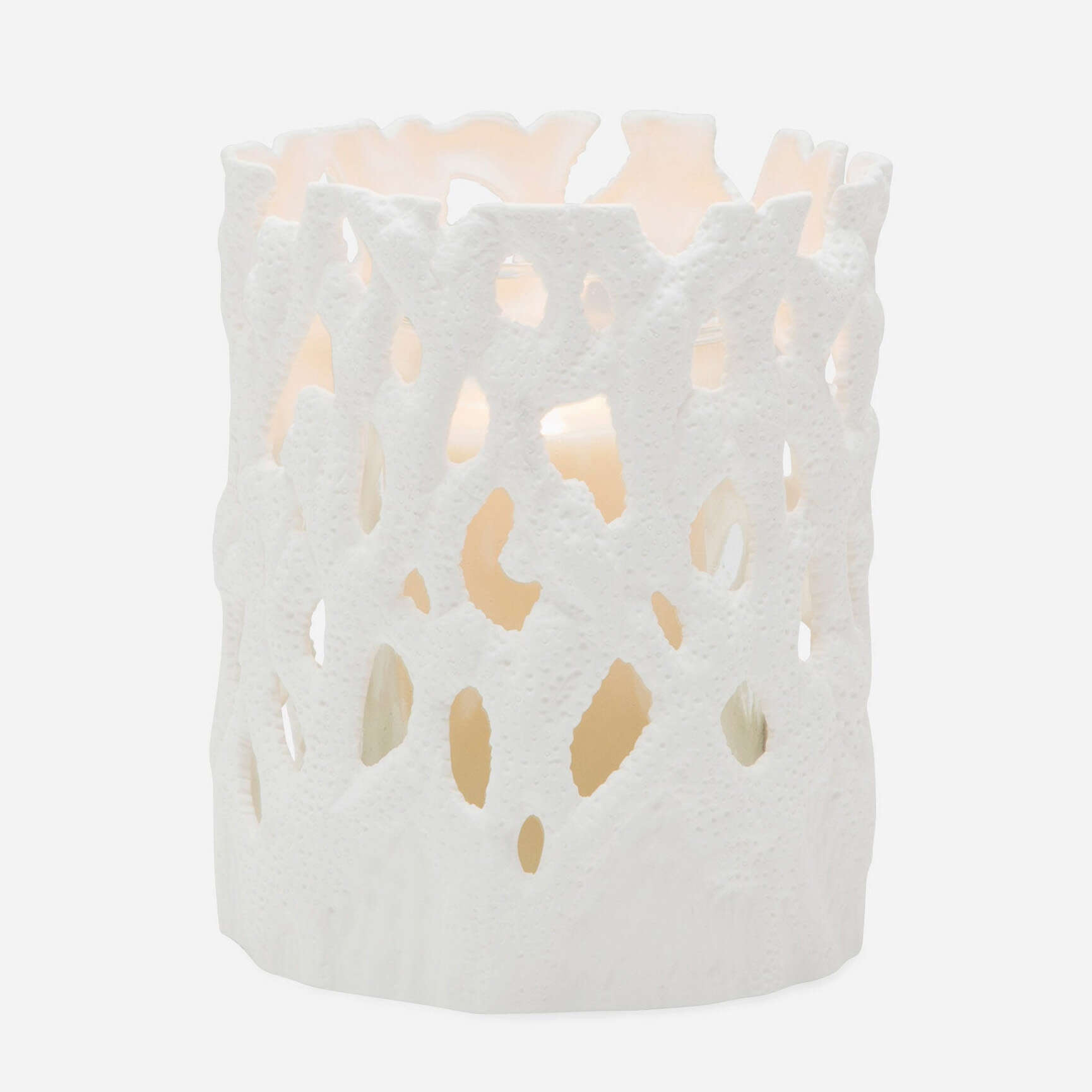 Porcelain hurricanes resemble undersea coral. Glass insert included.
