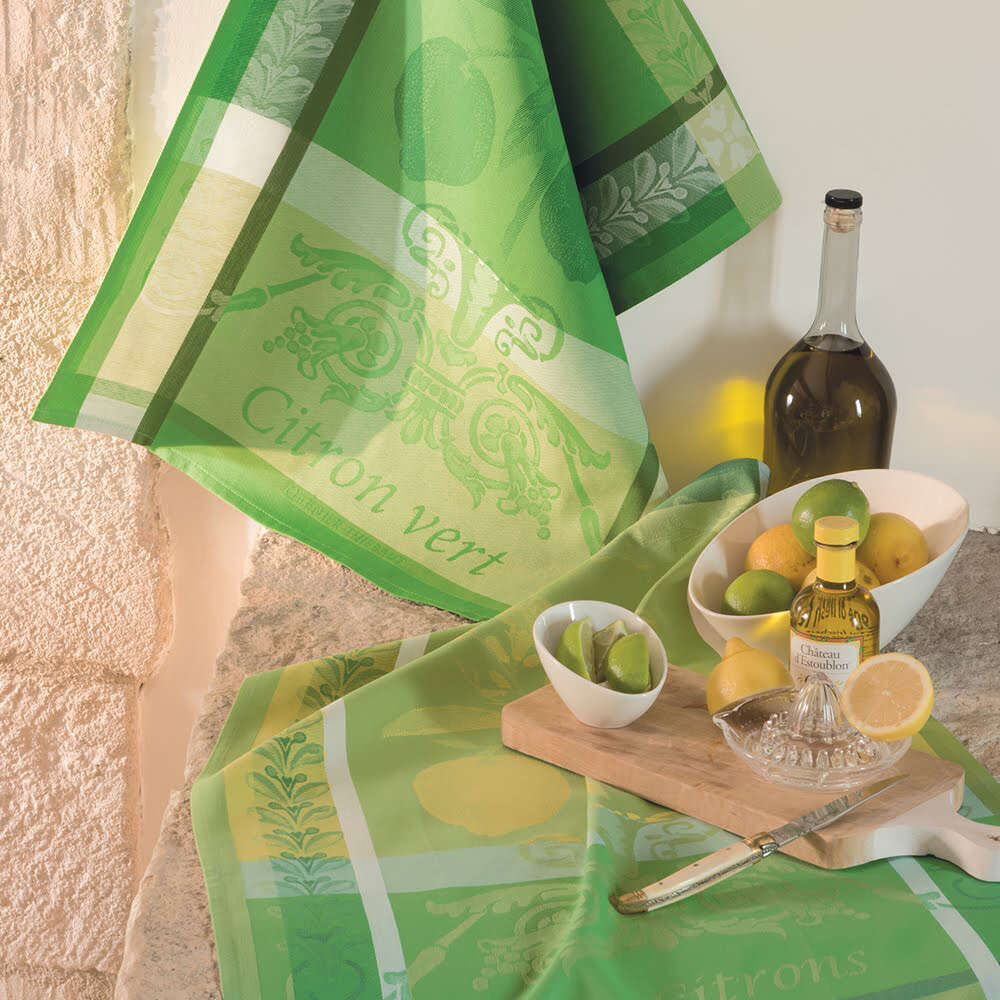 Brighten up your kitchen with the zest of lemon in the Citron Zeste towel, featuring yellow and green hues. Woven from extra-long staple cotton, it brings a fresh and functional style that's perfect for any culinary space.