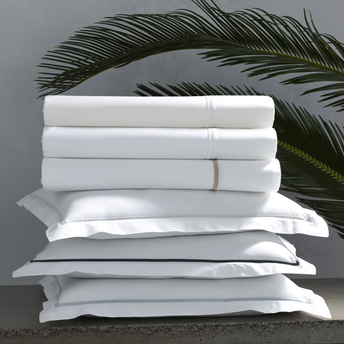 It takes a special yarn to create a 1000 thread count percale collection. Gatsby, our most luxurious sheeting, is woven from fine Giza 87 Egyptian cotton that yields an astonishingly soft and light fabric. Finished with a discreet sateen border available in six elegant colors, Gatsby has a modern, tailored look while feeling magnificent to the touch.