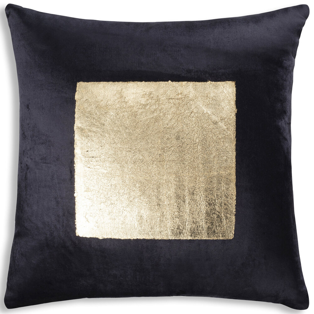 This pillow features a plush black velvet fabric with a gold foil print in a modern square pattern. Featuring plush teal velvet fabric with a gold foil print in a modern square pattern, this pillow adds a touch of sophistication to any room. The slight distressed look of the print adds uniqueness to it's hand crafted appeal. Add this pillow to any room to update and add style to it.