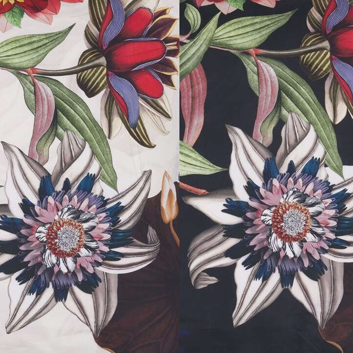 Graphic flowers and foliage intertwine in dramatic scale in this striking floral bedding design by Christian Lacroix. Digitally printed onto luxurious cotton sateen and fully reversible with light and dark grounds. Completed with statement pillowcases and packaged in eco reusable fabric pouches with button closure.