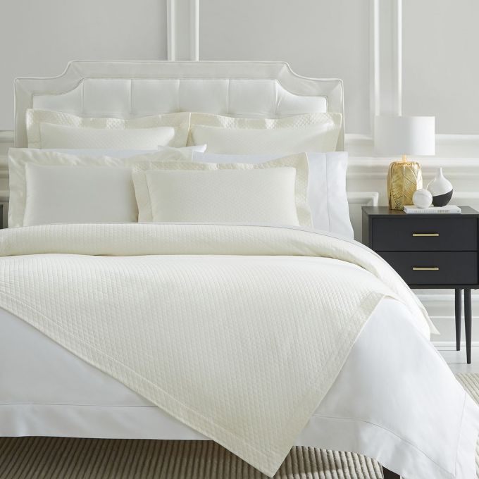 Bari is a timeless classic for us: the clean-lined simplicity of its diamond piqué pattern complements most every decorating style, lending a lovely refinement and polish to the bed. This matelassé has a substantial weight, a lustrous sheen, and a softly finished hand.
