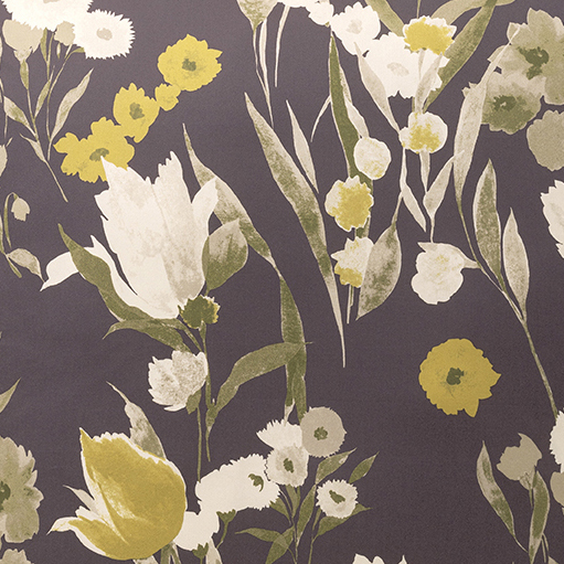 Inspired by Empress Eugénie and the decorative arts of her time, Closerie displays a sumptuous bouquet against a dark and mysterious background. Its large, hand-painted flowers combine tulips and cosmos in luminous shades of beige, gold, and khaki, offering a striking contrast with the deep purple background. The ensemble is enhanced by gold piping that highlights the richness of the pattern. The plain beige "gazelle" on the reverse calms the floral intensity for a bedroom of assured refinement.