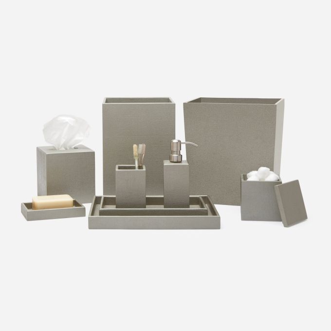 The Dannes is a total stunner in its monochrome Belgian linen. Function, texture, and incredible longevity make this favorite finish a triple threat in every bath, bringing a subtle, organic feel to modern settings.