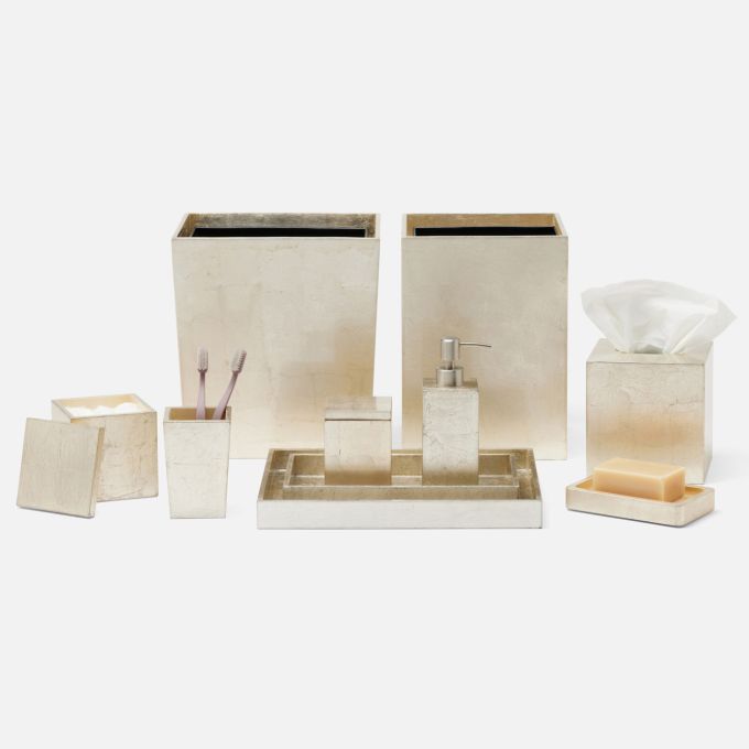 Crafted from silver leaf with a champagne gold finish, our Davos collection adds a distinguished touch to the bath. Each item instills a bit of a regal touch, instantly elevating any bath.