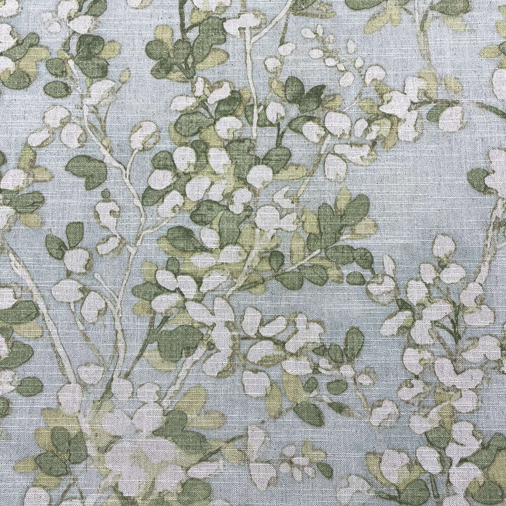 Fenton is a printed linen blend with a beautiful abstract printed design offer in 2 colorations: Denim and Mist. As one of our fashion fabrics, Fenton can be purchased by the yard, or made to order products like duvet covers, shams and decorative pillows.