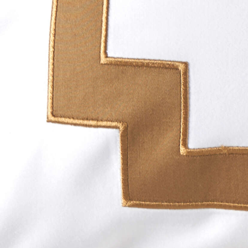 Paying homage to the historical figure Baron Haussmann, who was responsible for the renovation of Paris under Emperor Napoleon III, in the 1850s and 60s, this bed linen range by Yves Delorme Couture is subtly decorative. Drawing on decorative architectural elements, the design is crafted from 100% Supima cotton sateen in white and adorned with contrasting appliques and linear embroidery in baby blue.