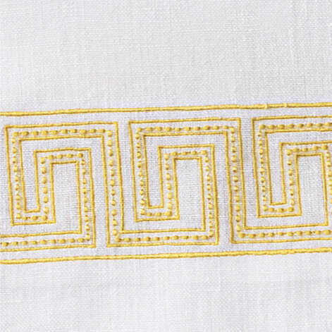 Inspired by an intricately beaded Schumacher tape, our boldly embroidered Ophelia collection embodies a traditional Greek key pattern with a bespoke sensibility. In 520 thread count Ceylon sheeting, it’s a playful, exuberant take on a traditional motif.