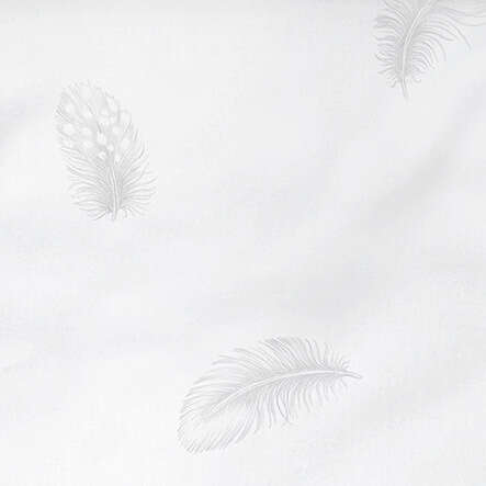 Hand-painted, delicate feathers float airily over the exquisite Jacquard fabric of the Plume design. The different feather patterns dance airily across the white bedding.