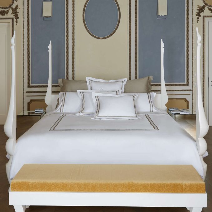 This collection best represents the concept "simplicity is the only beauty that never fades". A simple product of great elegance, a timeless beauty that can furnish classic and contemporary settings with great ease. The central hemstich and the play of the colors of the borders make the collection extremely refined.