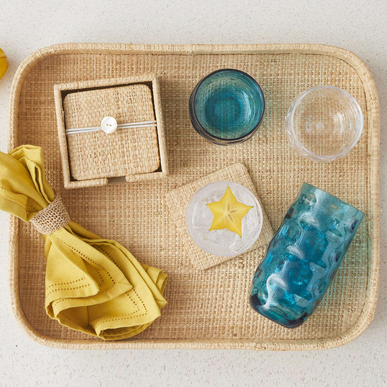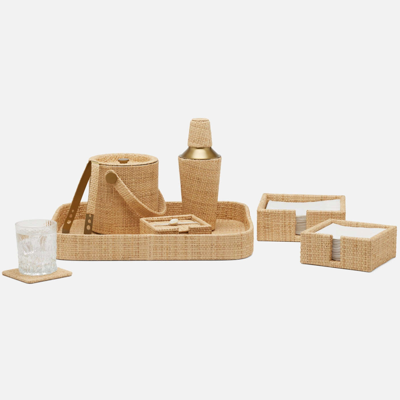 Natural rattan gives the Barth bar collection a casual, patio-friendly twist.