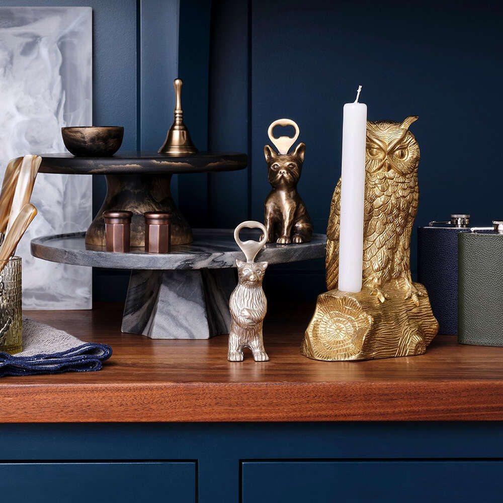 Expertly designed and detailed, the Benjamin bottle opener stands on its own two feet. Choose from Antique Brass or Antique Pewter Brass finishes, in Mini or Large sizes.
