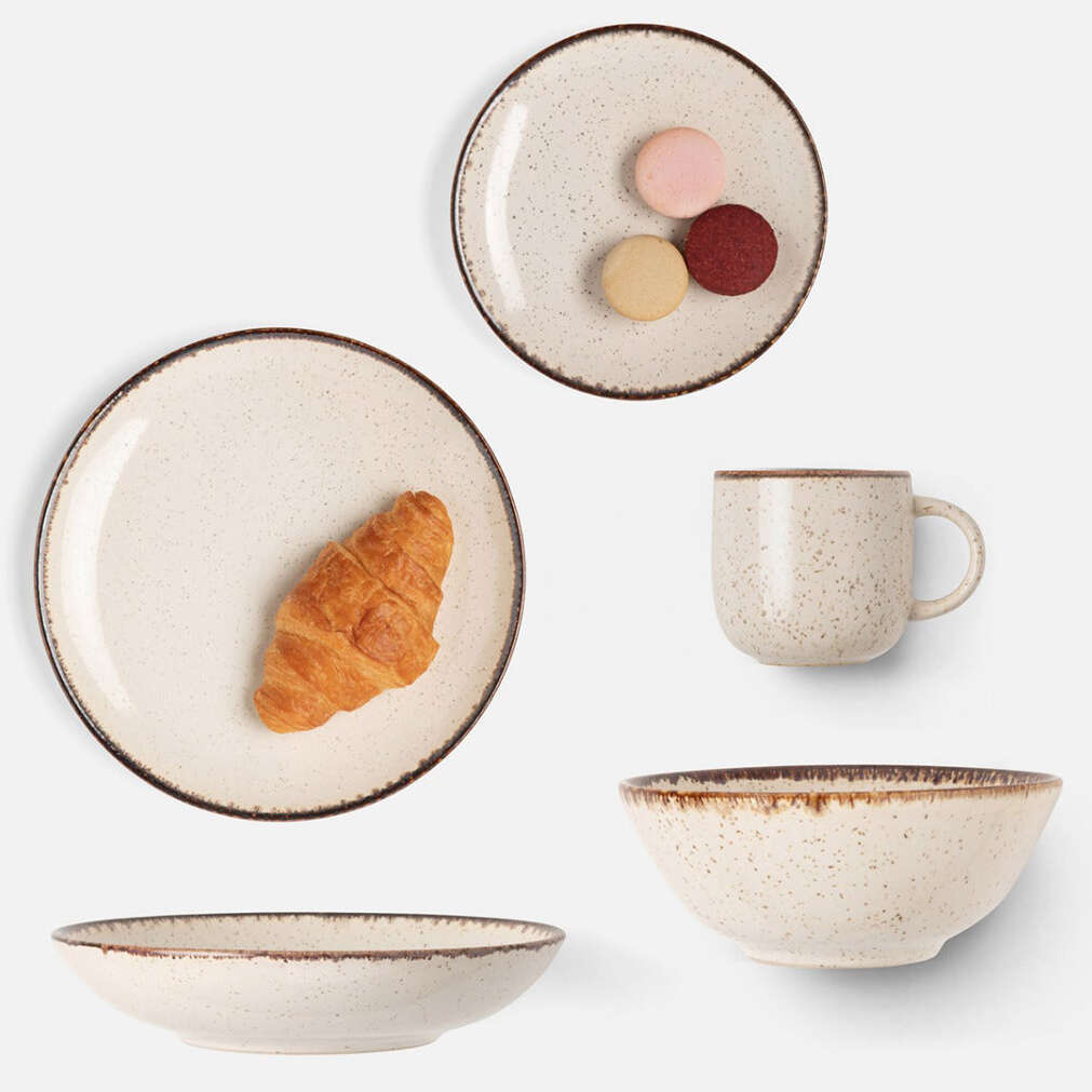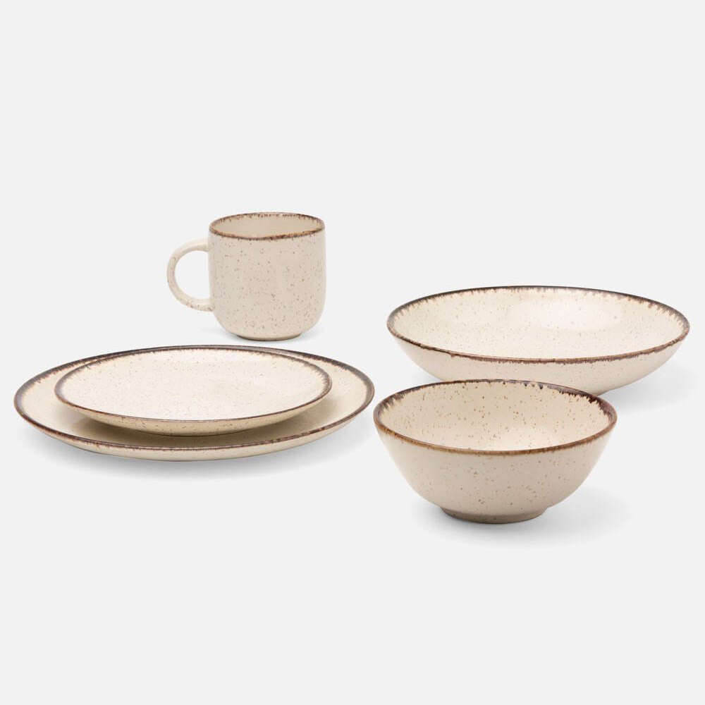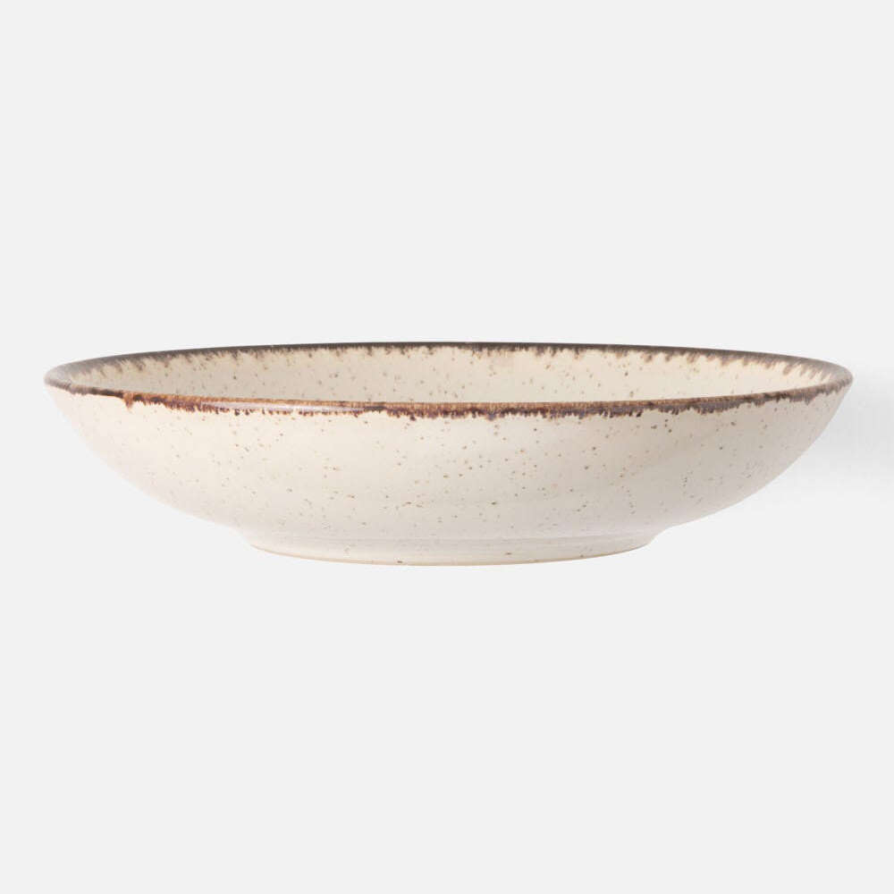 The Amaya collection brings a breath of natural nuance to any table or display with its speckled ivory finish. The contrasting rim showcases each piece’s handmade qualities while unifying them as a formal set.