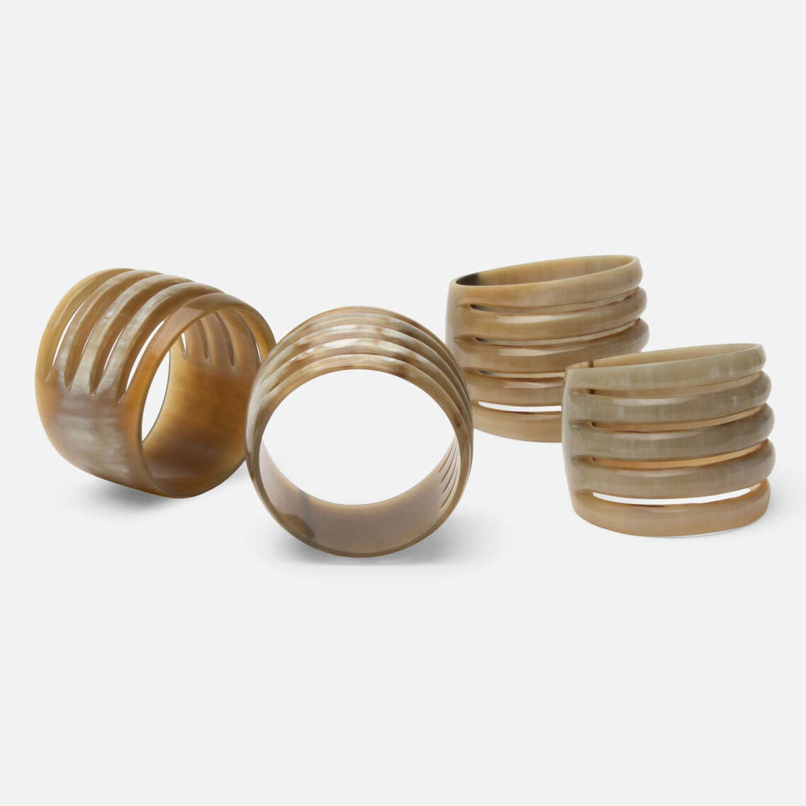 Perforated black-and-white striped horn napkin ring.