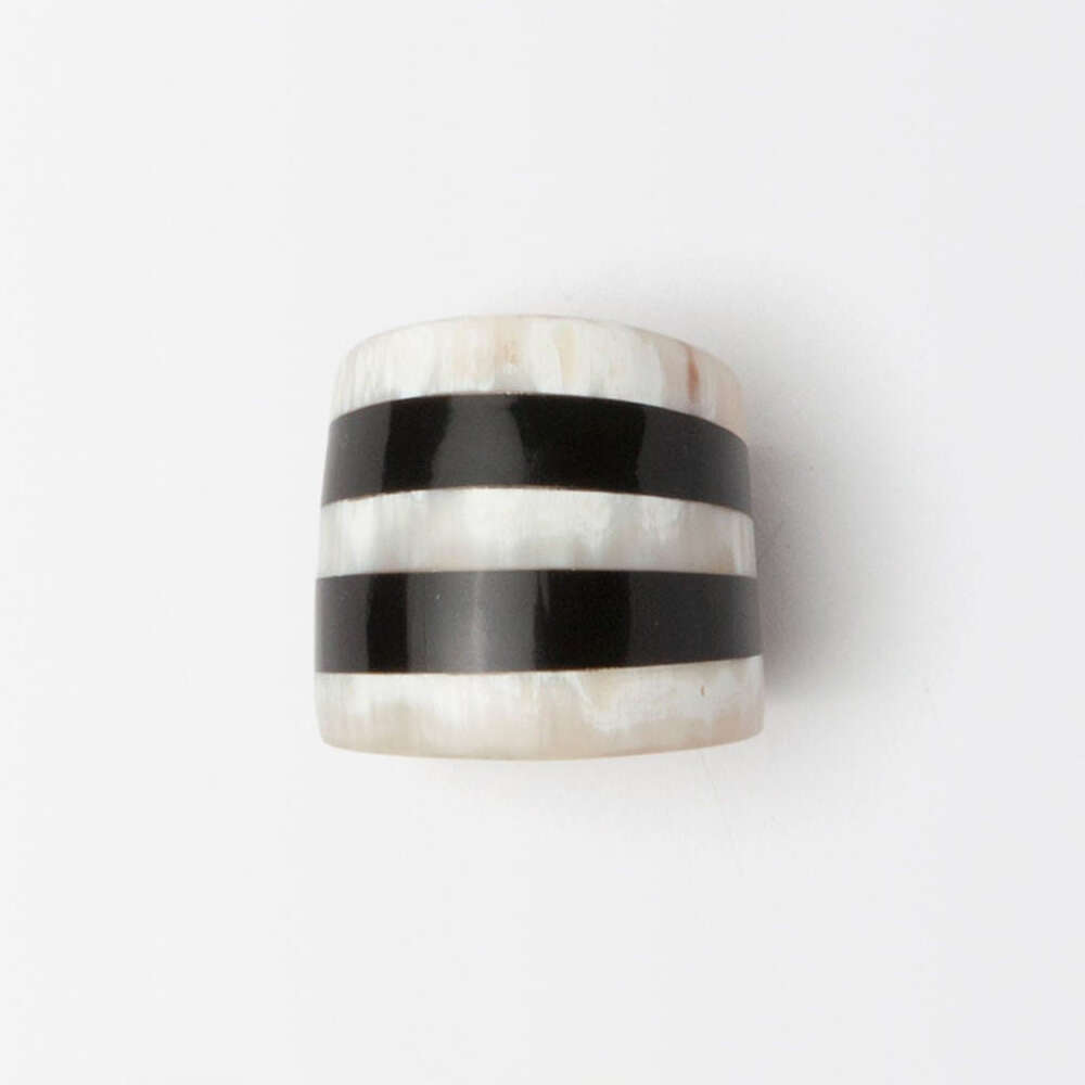 Black-and-white-striped horn napkin ring in a naturally chic style.