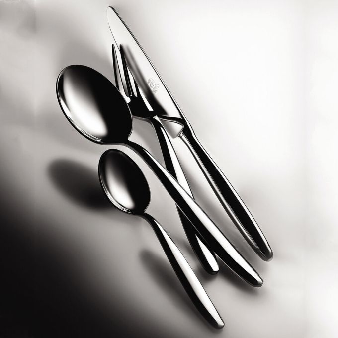 The Acqua collection by Mepra is flatware that exudes luxury as a lifestyle. Its cool, minimal, sexy style is inspired by influential designers like Angelo Mangiarotti and exalted through generations of tradition, technique and superb materials. Indulge in Italian craftsmanship with our 18/10 stainless steel utensils, boasting a robust 4.0mm thickness for enduring durability and ergonomic comfort. The knives, featuring double serration for lasting sharpness, combine practicality with sophistication, and the entire collection is dishwasher safe for your convenience.