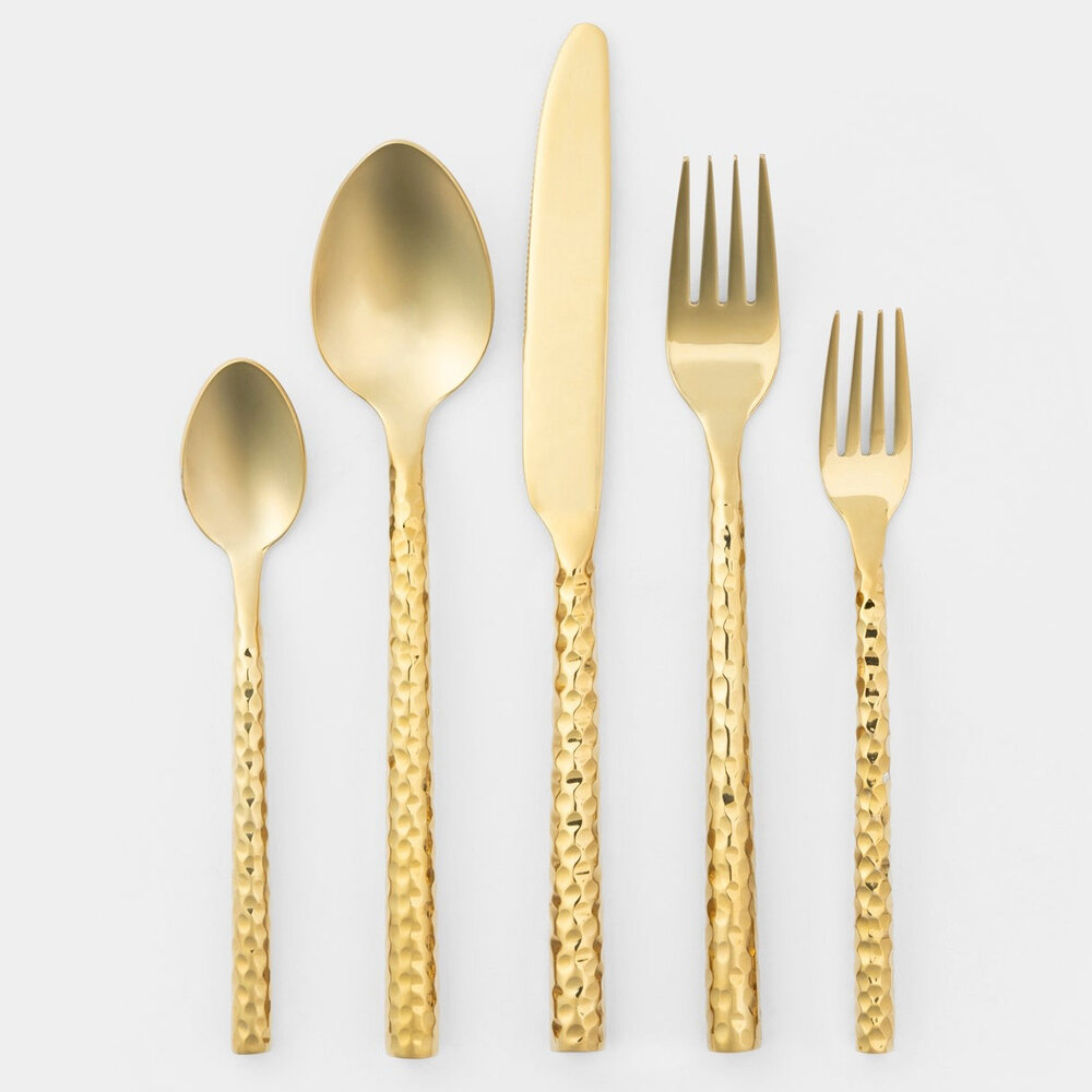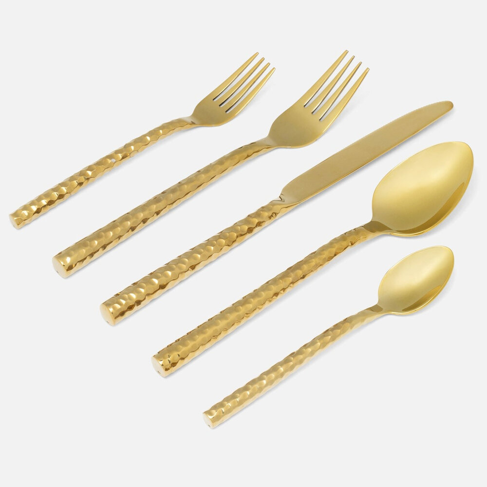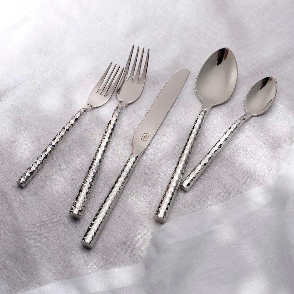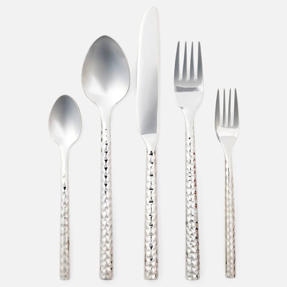 Spruce up every day dining with the Annella flatware set made from hammered stainless steel.