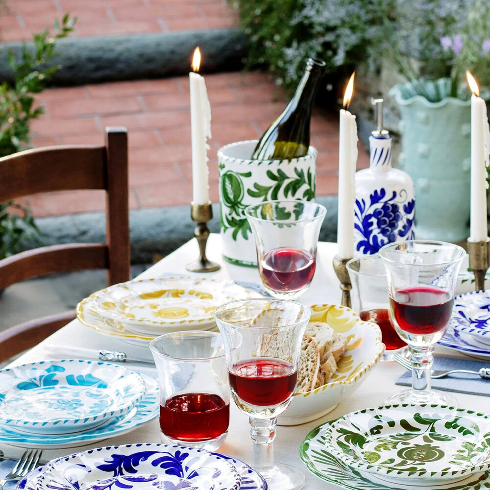 The bold patterns and rich glazes of Arezzo harken back to the centuries-old tradition of Majolica. The Arezzo Green Utensil Holder brings fresh life to the style's intricate designs with its organic, confident brushstrokes and mix-and-match possibilities.