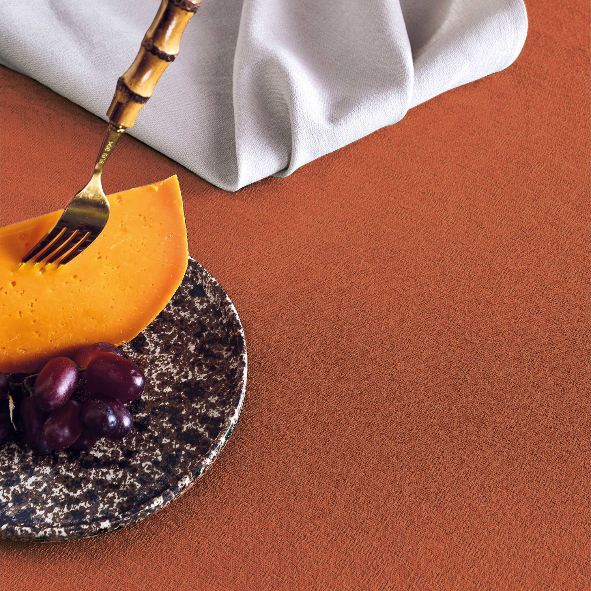 The Bastide Tablecloth is woven from 100% extra-long staple cotton, featuring a light jacquard weave that combines softness and durability. Its rich red-orange hue brings a warm, sophisticated touch to any dining setting.