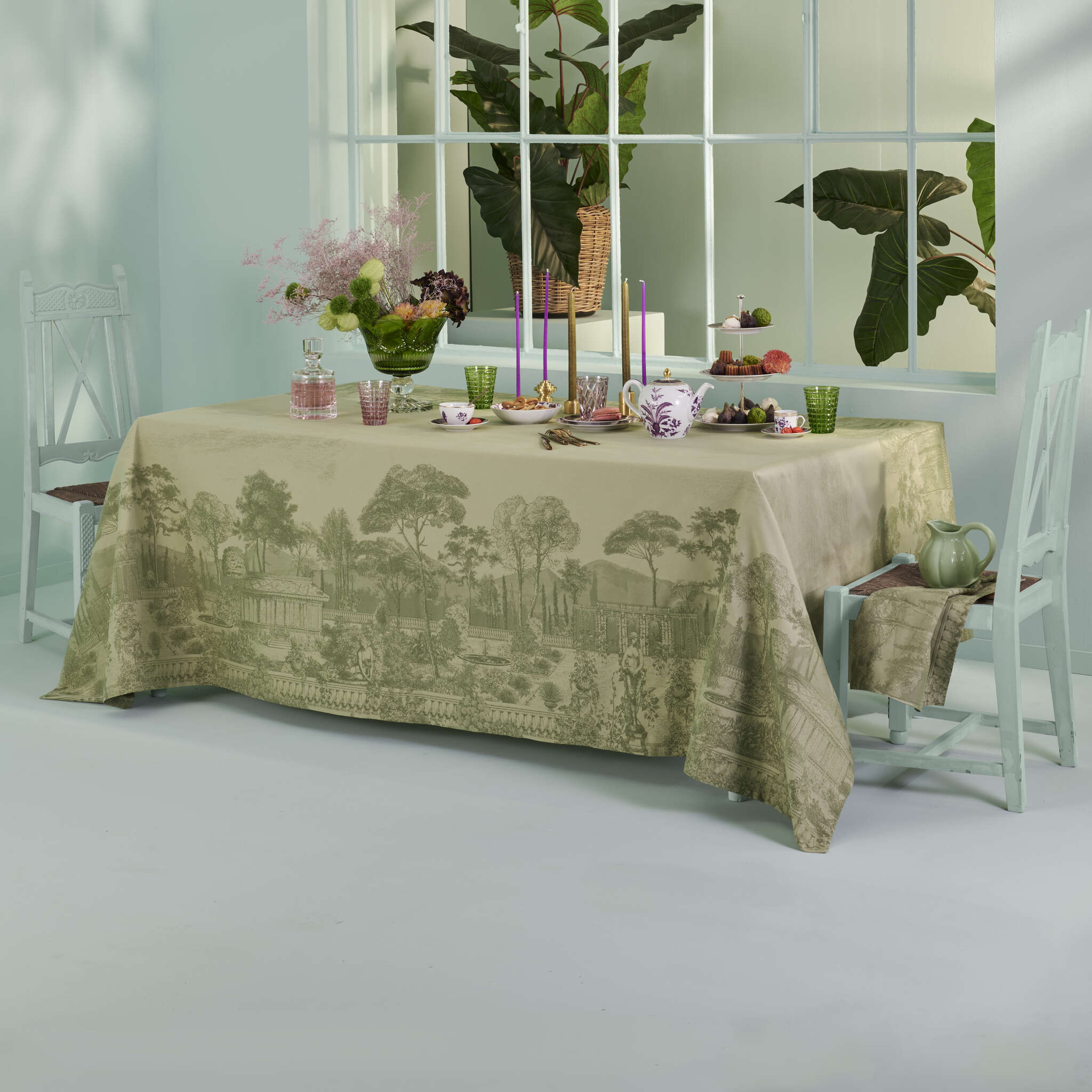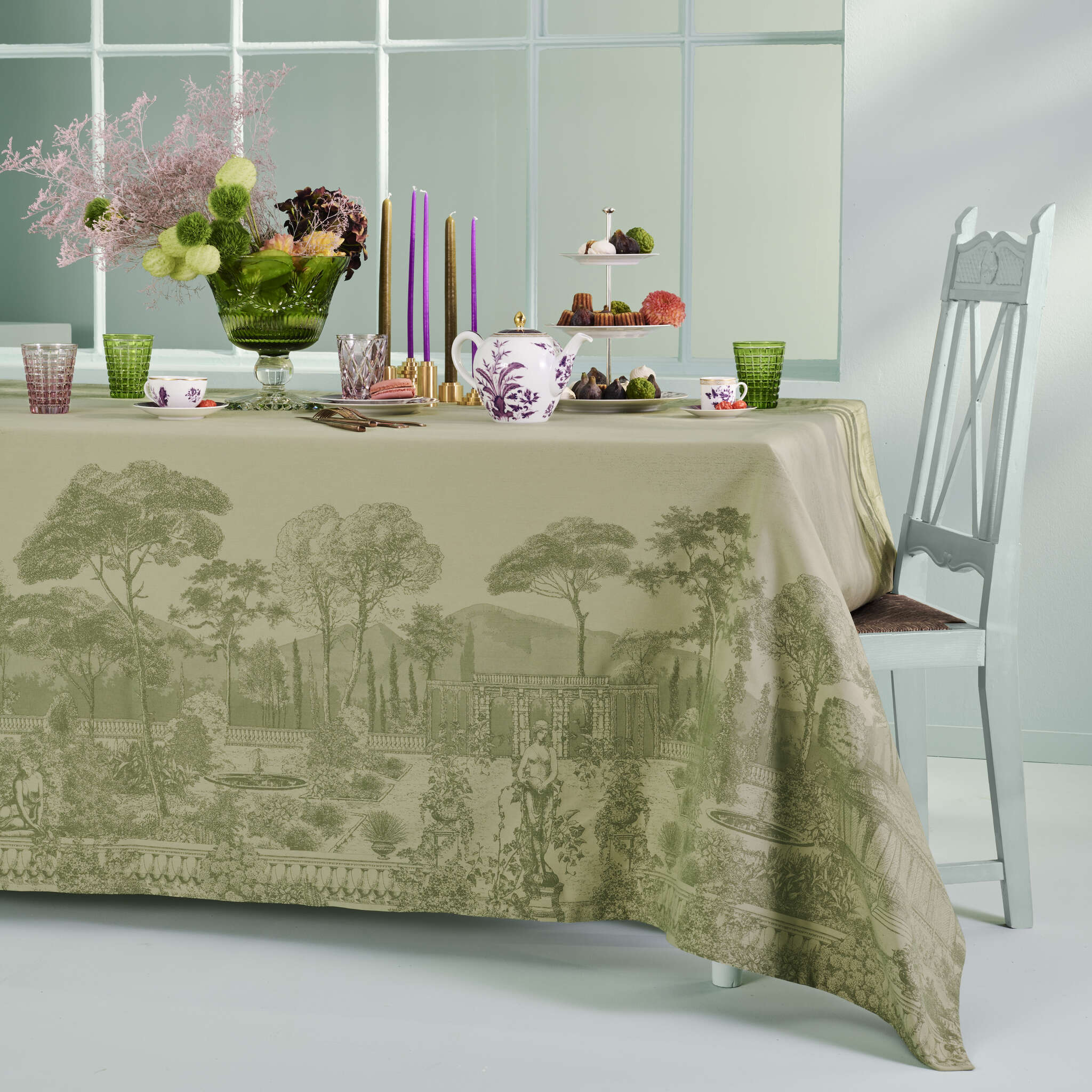 Green Sweet stain resistant treatment with high thread count for added sheen and finer pattern details.