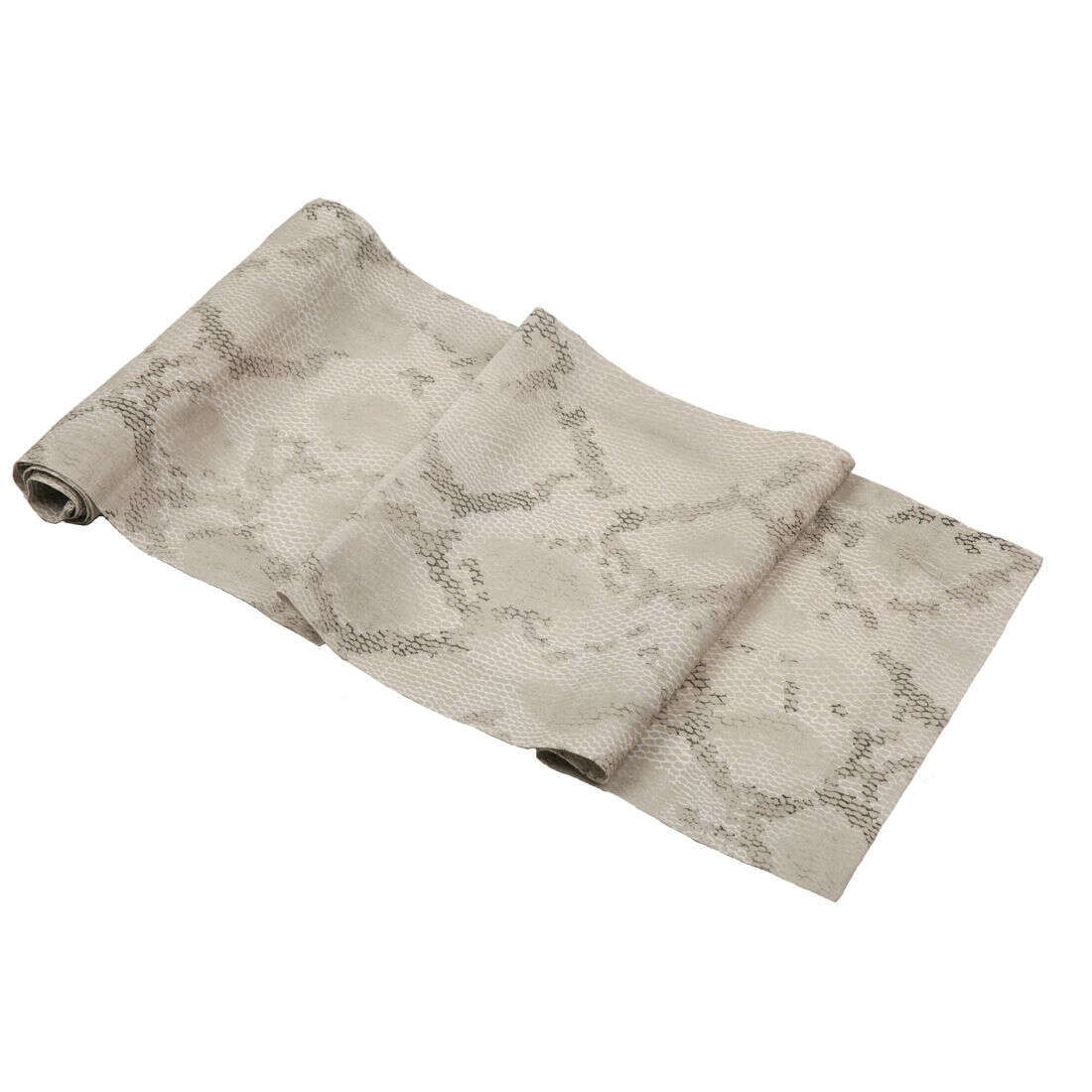 Shimmering snakeskin print in sophisticated shades of silver and grey on taupe background.