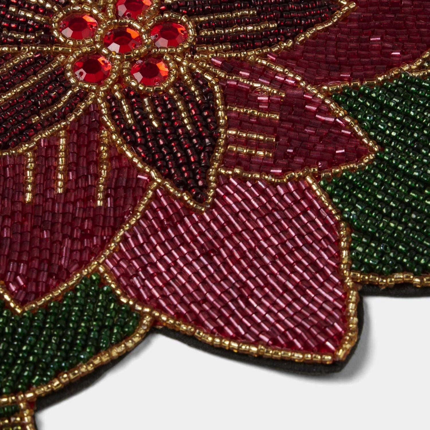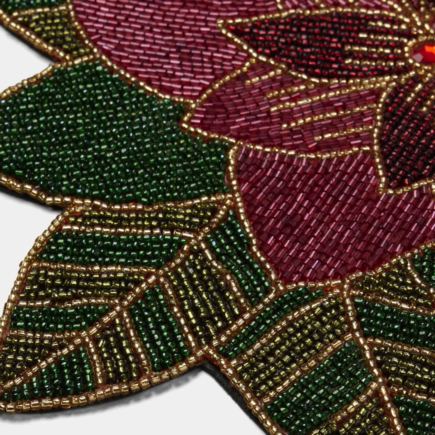 This festive bouquet of hand-beaded poinsettias is an enchanting centerpiece for any holiday meal. Intricately crafted from a mix of glass beads in shiny greens, golds, and reds.