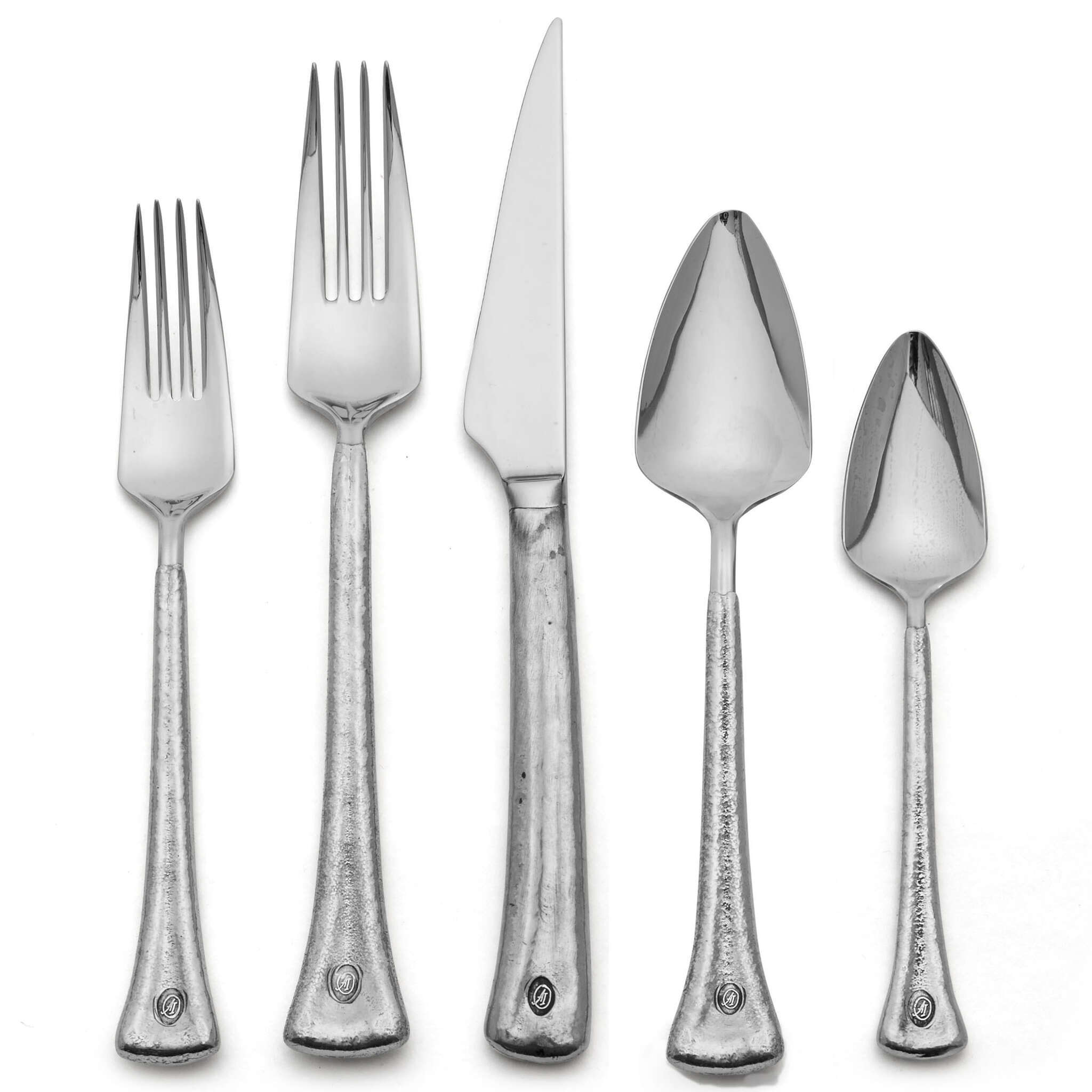 Italian pewter is hand wrapped around 18/10 stainless steel to create our Elena Flatware. Unusual shapes and a contemporary design combine to bring modern meets old world. Italian pewter and 18/10 stainless steel, Hand made in Italy.