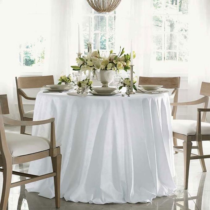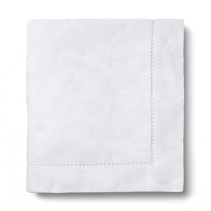 Acanthus leaves are jacquard-woven onto fine, long-staple cotton for an elegant, all-over pattern. Available in bold and neutral colors, this tablecloth, napkin and placemat collection is perfect for any occasion.
