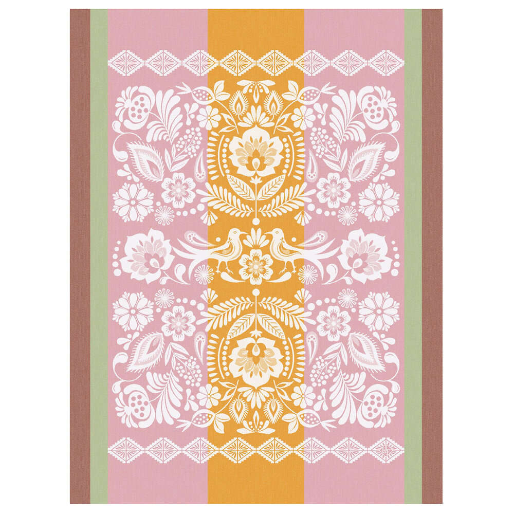 Nature awakens in celebration, bathed in light and sunshine, and dances through your home. Inspired by Tenango embroidery from Mexico, feathers, flowers, and birds intertwine across vibrant colors that stir the senses and invite you to dream.